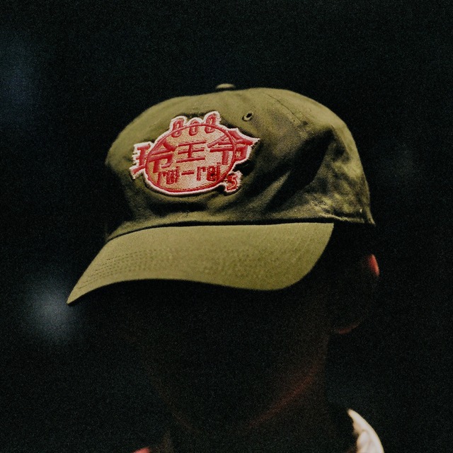 NEW HATTANのキャップをベースに、ひとつひとつが職人による手作業で作られたワッペンを特殊な加圧で取り付けた。縫い糸は光によって光沢が変わるシャンパンホワイトを使用している。